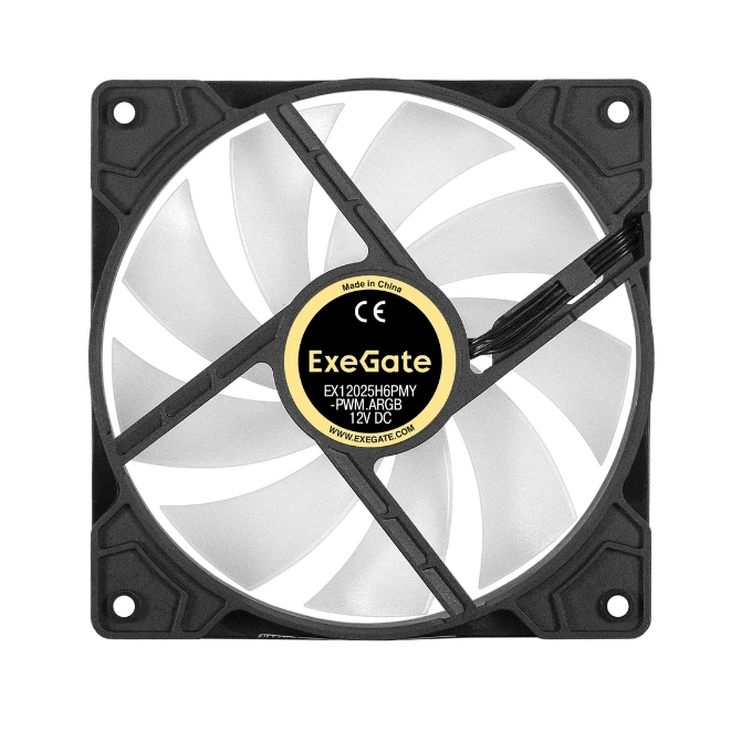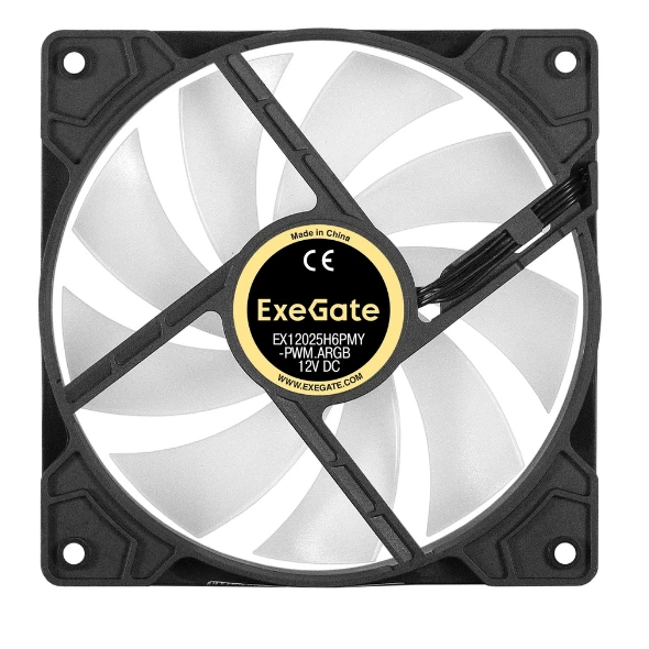 Вентилятор с подсветкой ExeGate EX12025H6PMY-PWM.ARGB EX295971RUS 12В DC (120x120x25 мм, Hydraulic bearing (гидродинамический), 6pin, 1200RPM)