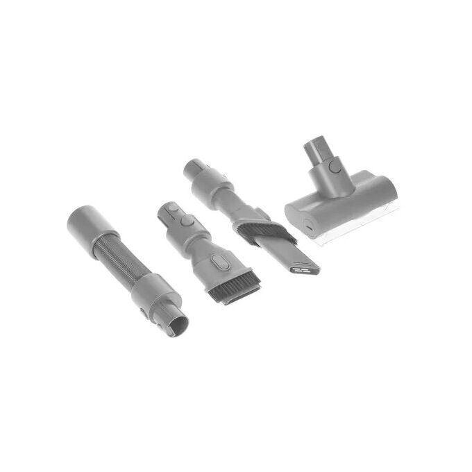 2 доп насадки, Пылесос, блок питания, металлическая трубка, подставка для зарядки, станция, труба алюминиевая, труба гнущаяся, удлинительная трубка, щетка для ковров, щетка основная