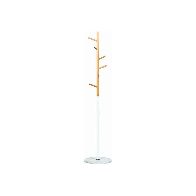 Вешалка-стойка BRABIX CR-1906 (606440) на мраморном диске, металл белый/дерево бук, 6 крючков
