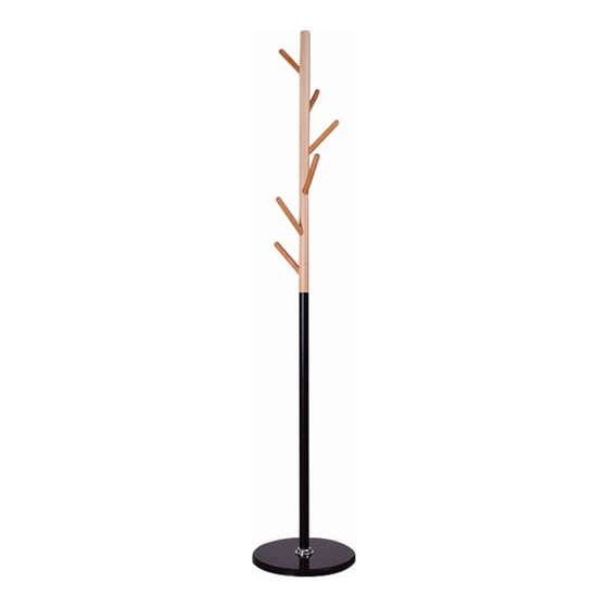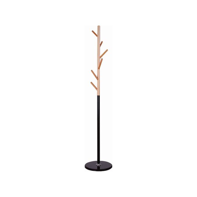 Вешалка-стойка BRABIX CR-1906 (606441) на мраморном диске, металл черный/дерево бук, 6 крючков