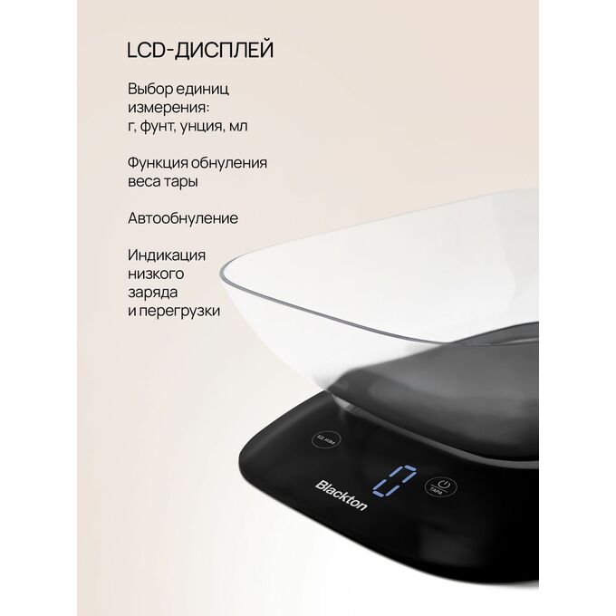 Кухонные весы, элементы питания AAA (3 шт.), измерительная чаша, руководство по эксплуатации, гарантийный талон
