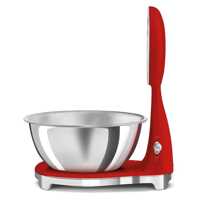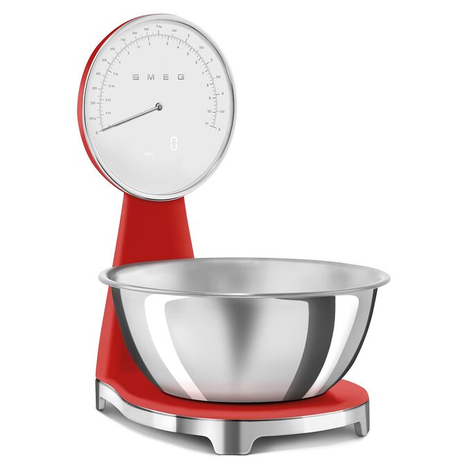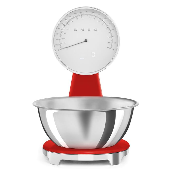 Весы кухонные SMEG KSF01RDWW аналоговый/цифровой дисплей, выбор единицы измерения, максимальный 5кг, шаг 1г, красный