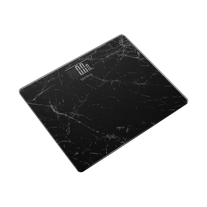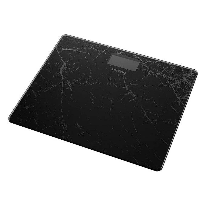 Напольные весы KBS 1001, выполненные из закаленного стекла, имеют стильный дизайн под черный мрамор. Они оснащены LCD-дисплеем и могут измерять вес до 180 кг с делением в 50 г.