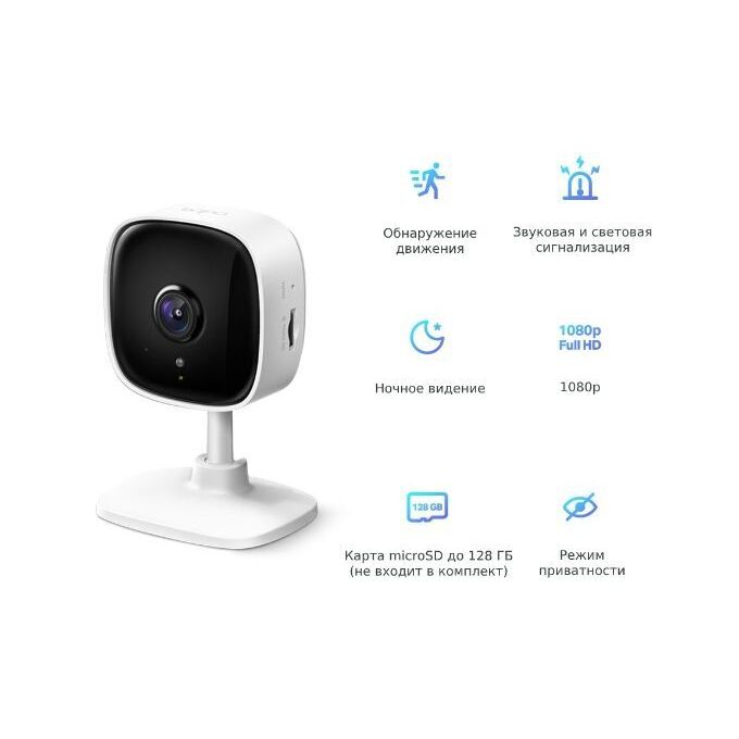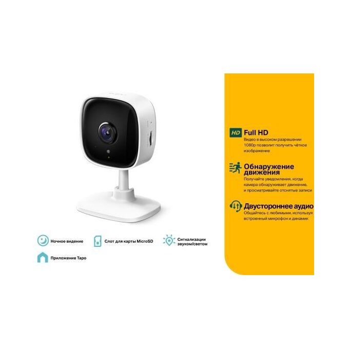 Описание: Видео в разрешении 1080p. Ночное видение на расстоянии до 9 м. Push-уведомления на смартфон при обнаружении движения. Звуковая и световая сигнализация для незваных гостей. Встроенный микрофон и динамик. Хранение до 128 ГБ на карте microSD. Простая настройка и управление с помощью приложения Tapo