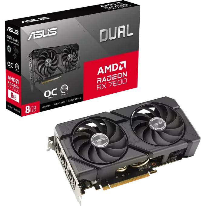 Видеокарта ASUS AMD Radeon RX 7600 Dual (Dual-RX7600-O8G-Evo) 8Gb, GDDR6, OC, Ret