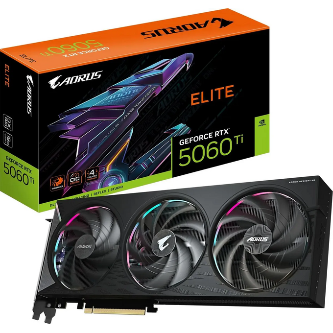 Видеокарта Gigabyte Nvidia GeForce RTX 5060TI Aorus Elite (GV-N506TAORUS E-16GD 1.0) 16ГБ, GDDR7, Ret