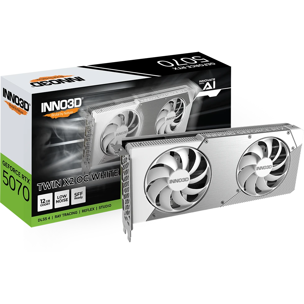 Видеокарта INNO3D RTX5070 Twin X2 ОС White 12GB (N50702-12D7X-195064W) GDDR7 192bit 3xDP HDMI 2Fan RTL