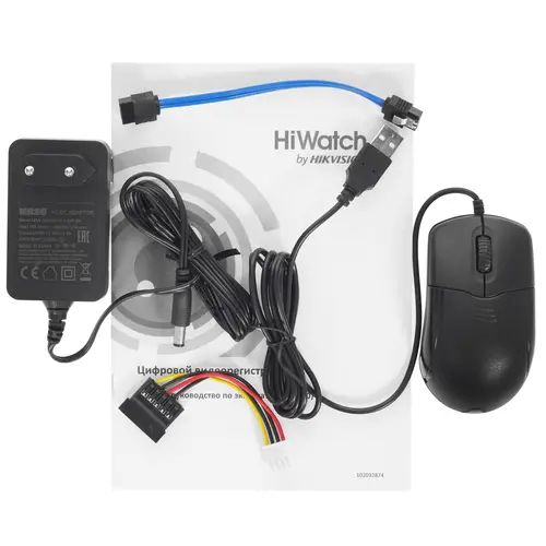 адаптер питания, документация, кабель SATA, мышь