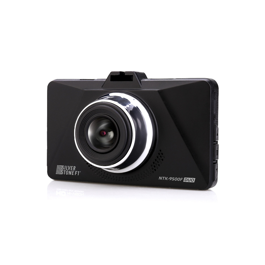 Видеорегистратор SilverStone F1 NTK-9500F Duo имеет облегчённый пластиковый корпус с матовым покрытием и камеру заднего вида, с помощью которой создаётся второй канал видеозаписи.