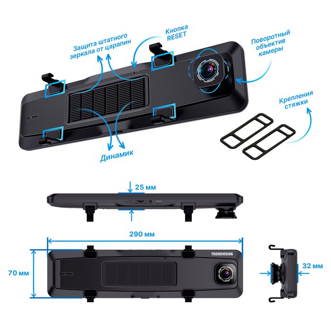 TrendVision aMirror 15 Android UNIVERSE - мультифункциональный 2-камерный Full HD видеорегистратор-зеркало