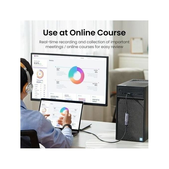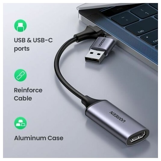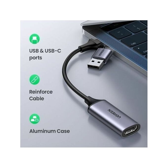 Видеозахват UGREEN CM489 40189 USB 1080P Video Capture Device Grey