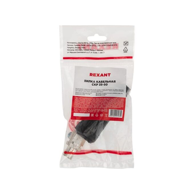 Кабельная вилка REXANT модель СКР 35-50 16-0885 – быстросъемный соединительный разъем (штекер), который монтируется на кабель сварочных аксессуаров (держатель электрода на проводе или зажим массы) для последующего простого и надежного соединения к корпусу сварочного аппарата, при наличии на нем соответствующего разъема или с кабелем с целью общего увеличения длины кабеля.