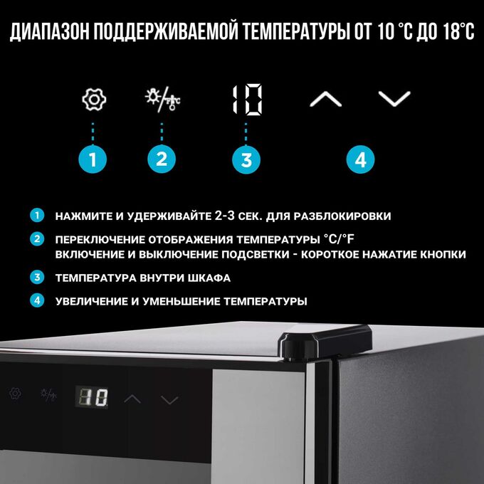Диапазон температур: 10-18°C (разница с температурой окружающей среды не более 15 °С)
