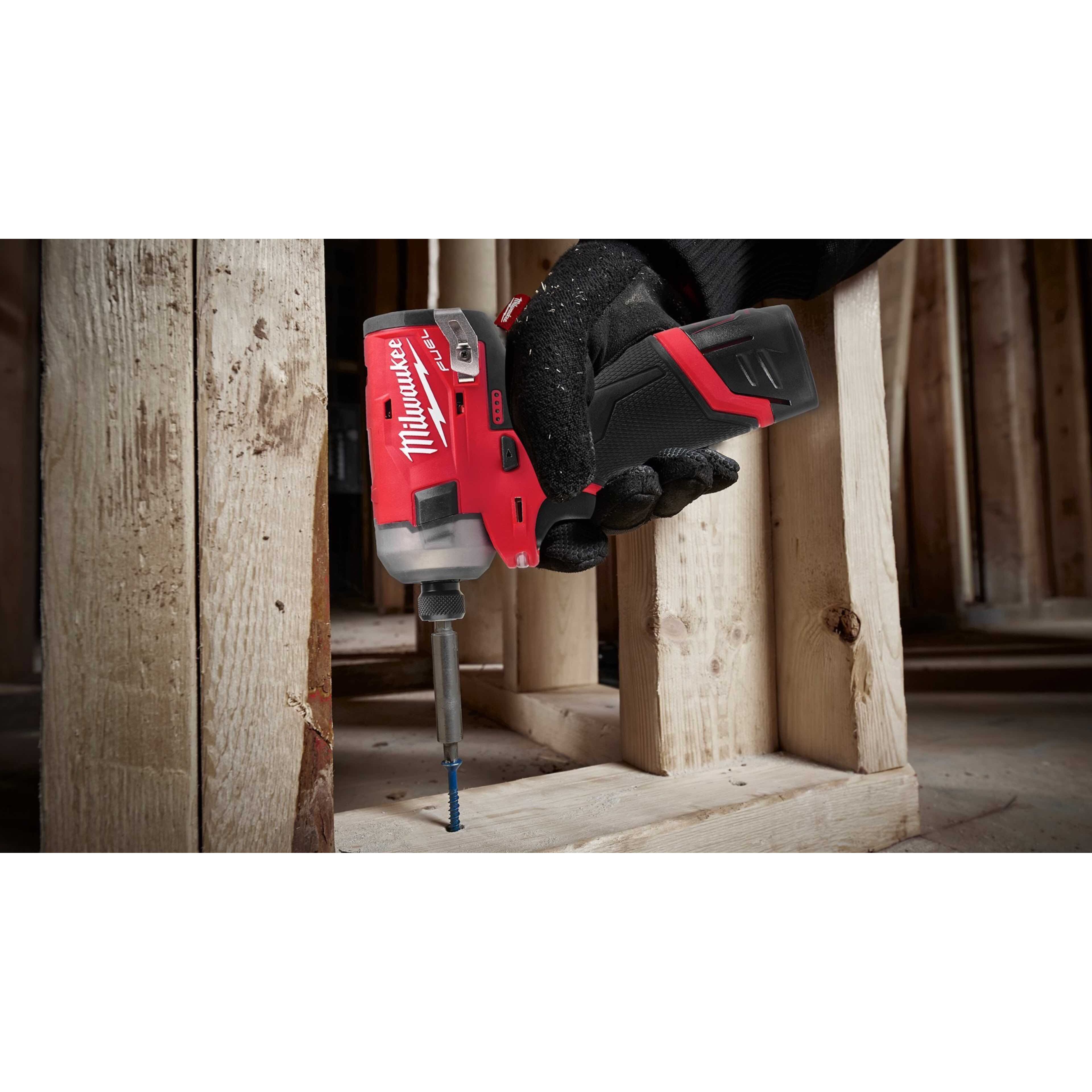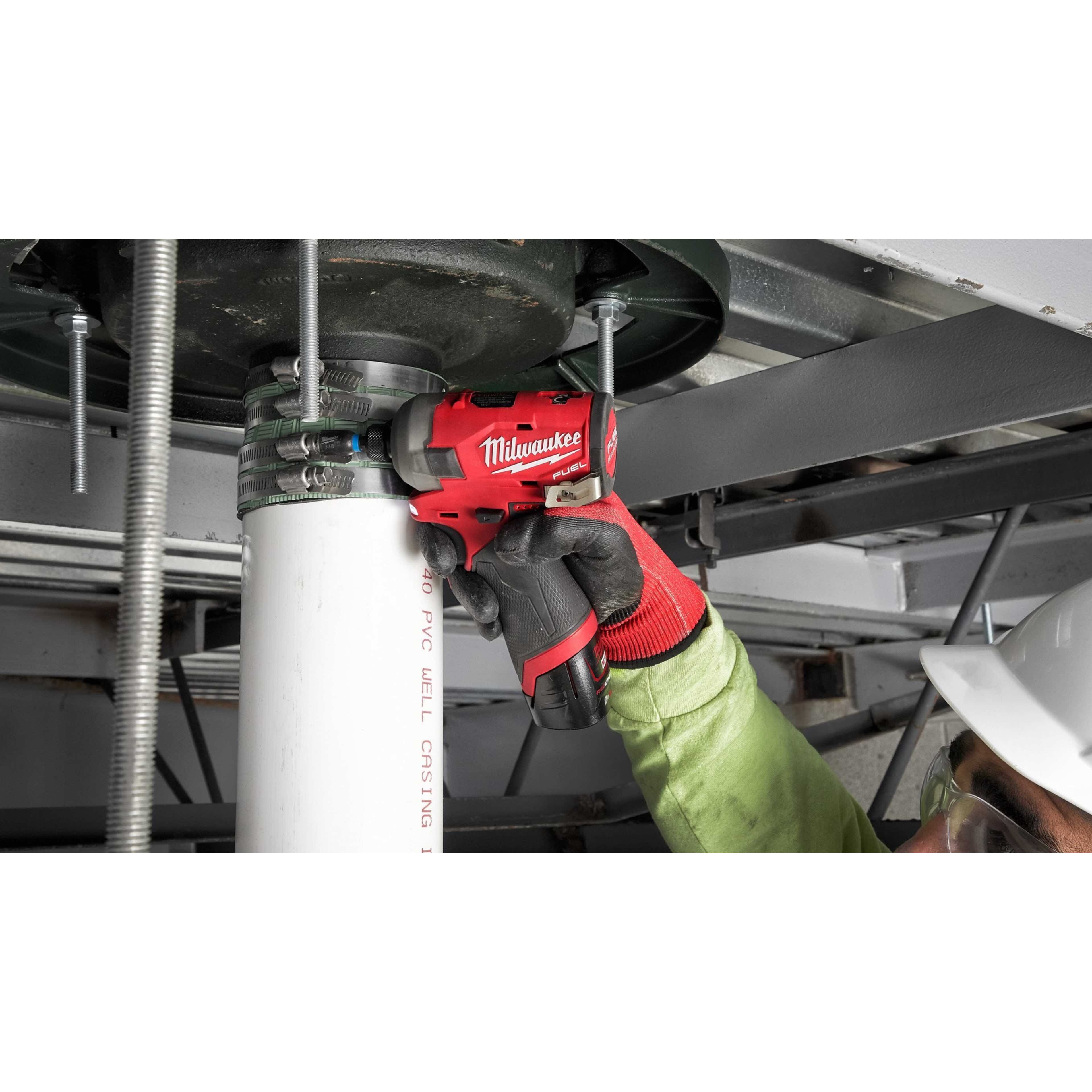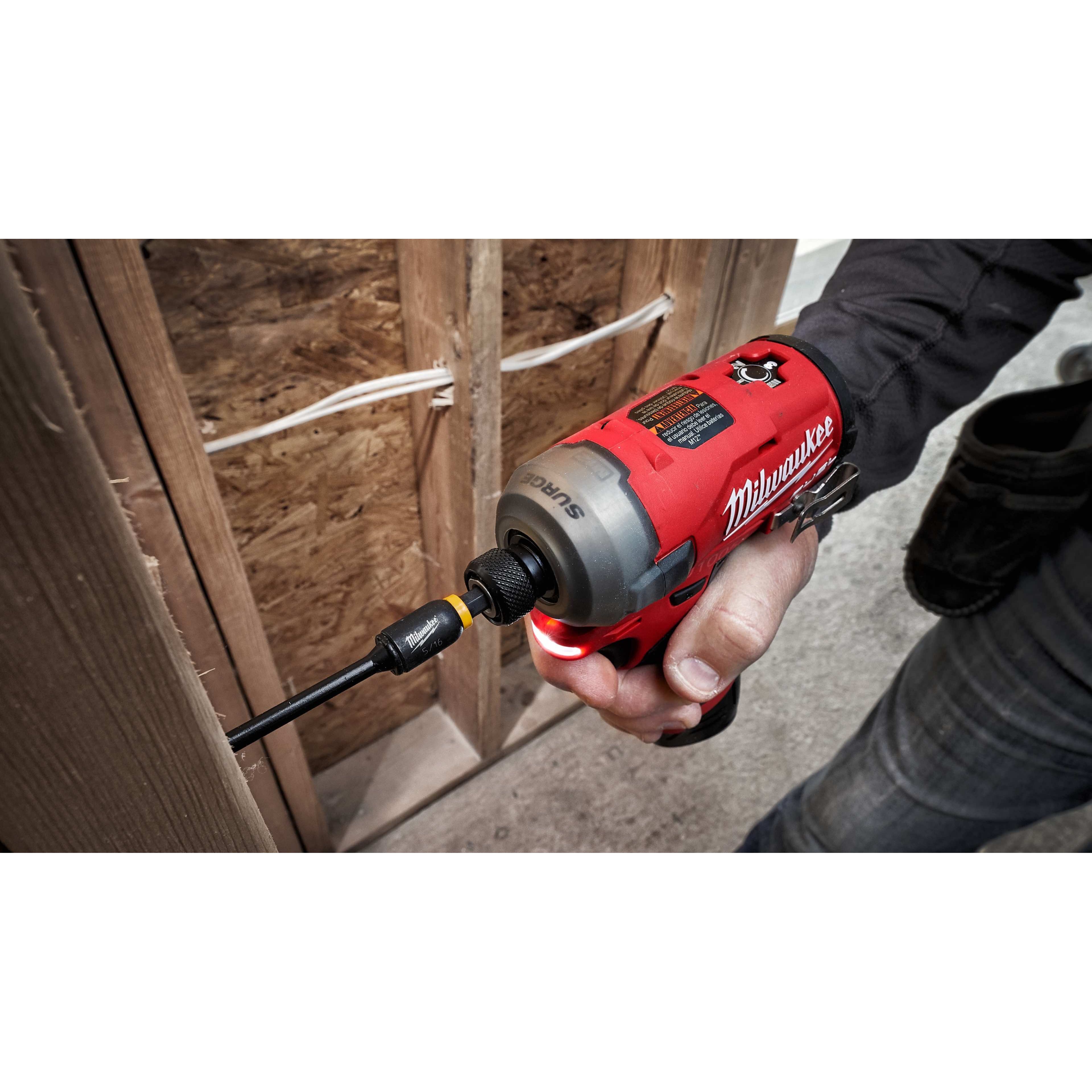 - M12 FUEL™ SURGE™ ¼″ Hex гидравлический ударный винтовёрт - это самый тихий 12 вольтовый ударный винтовёрт Milwaukee®. Он обладает превосходными шумовыми показателями (всего 76 дБ, при креплении в дерево)