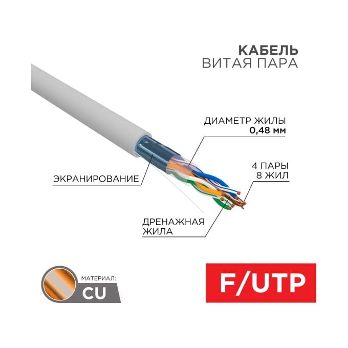 Технические характеристики PROCONNECT витая пара FTP 4PR 24AWG, CAT5e бухта 305 м 01-0152