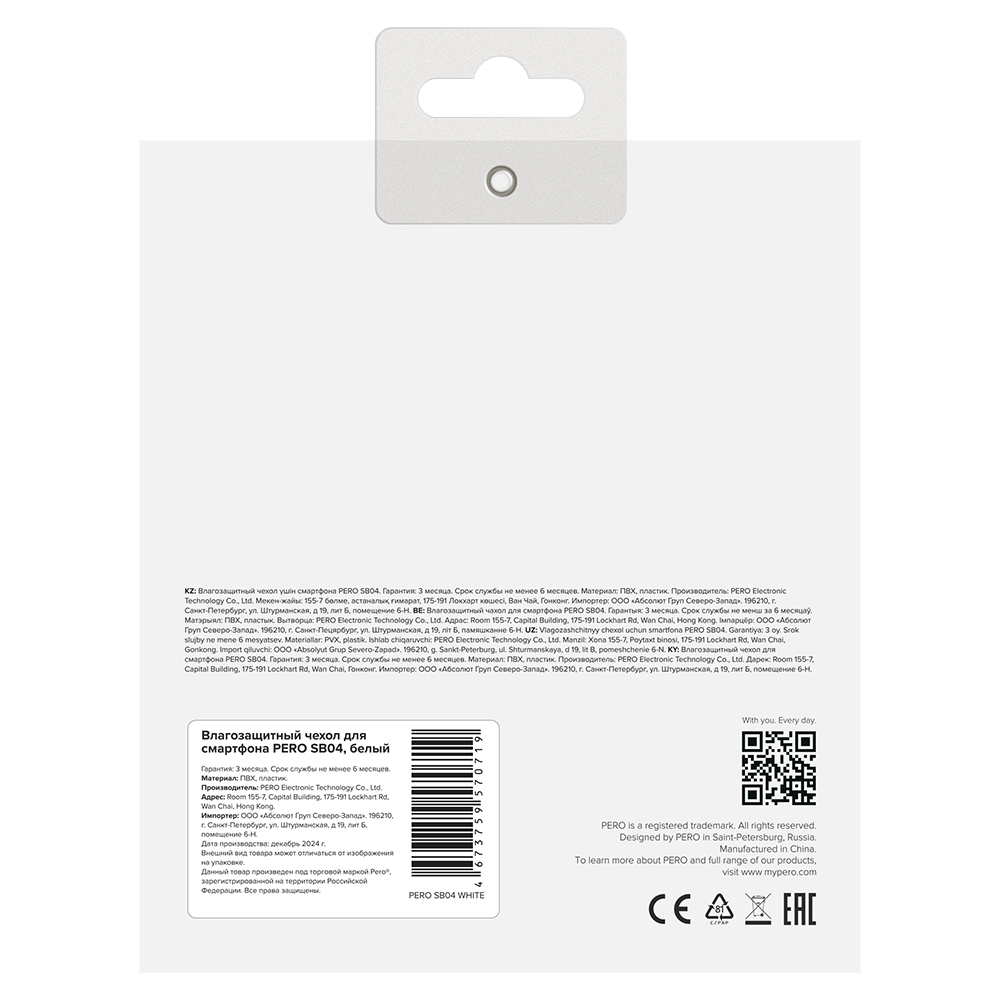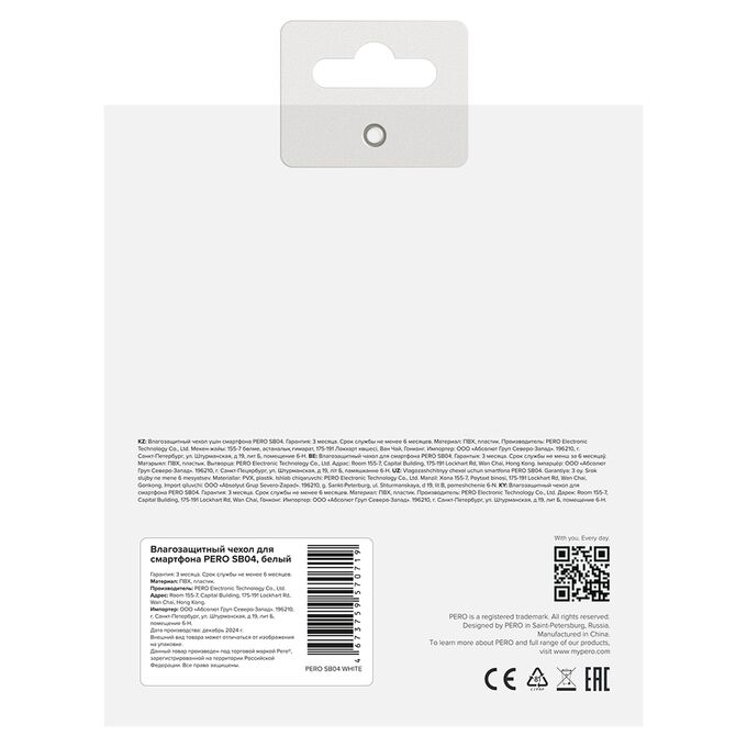 Влагозащитный чехол для смартфона Pero SB04 WATERPROOF BAG белый