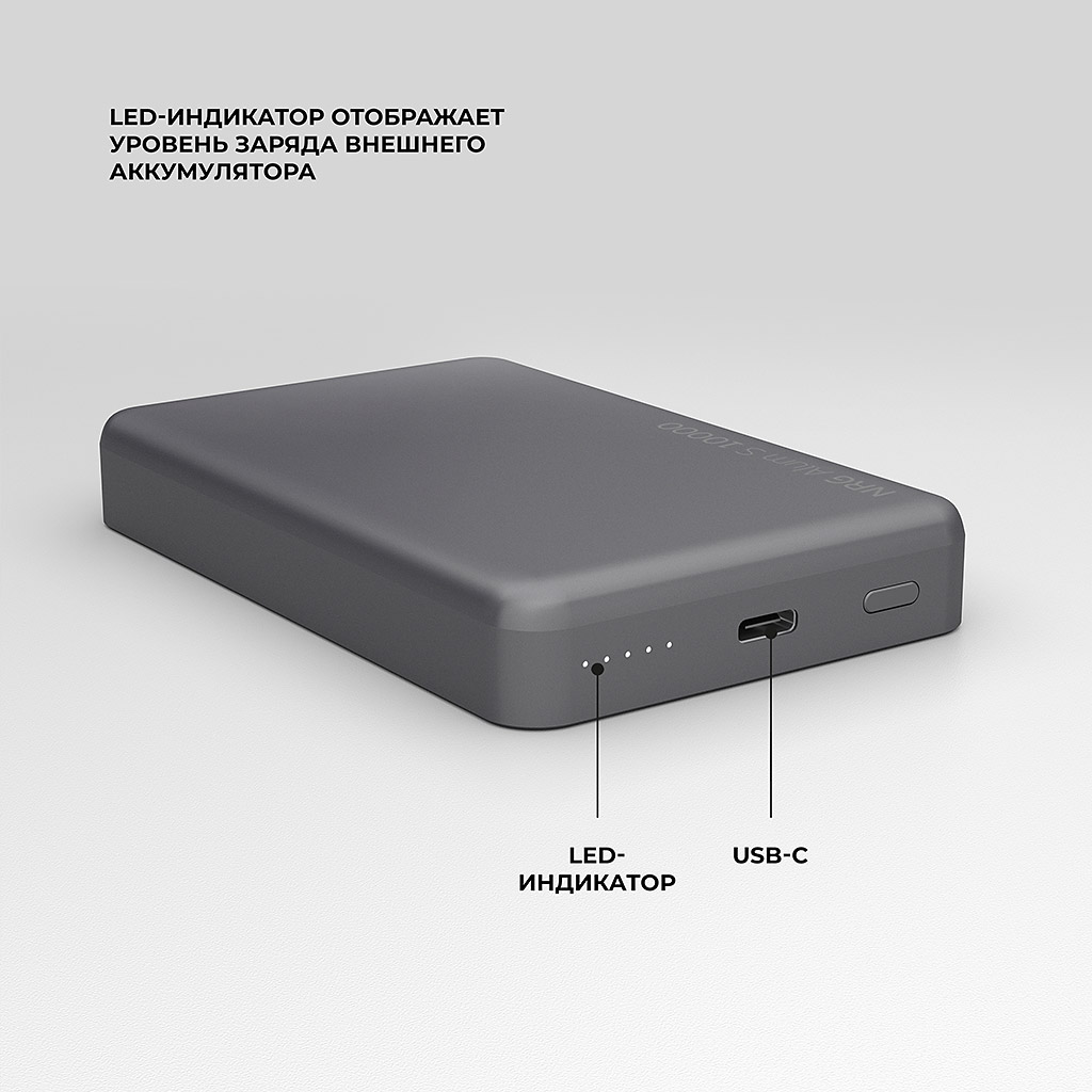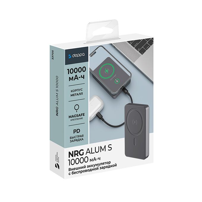 Внешний АКБ NRG Alum S 10000 мА-ч, 15Вт MageSafe, серый, Deppa