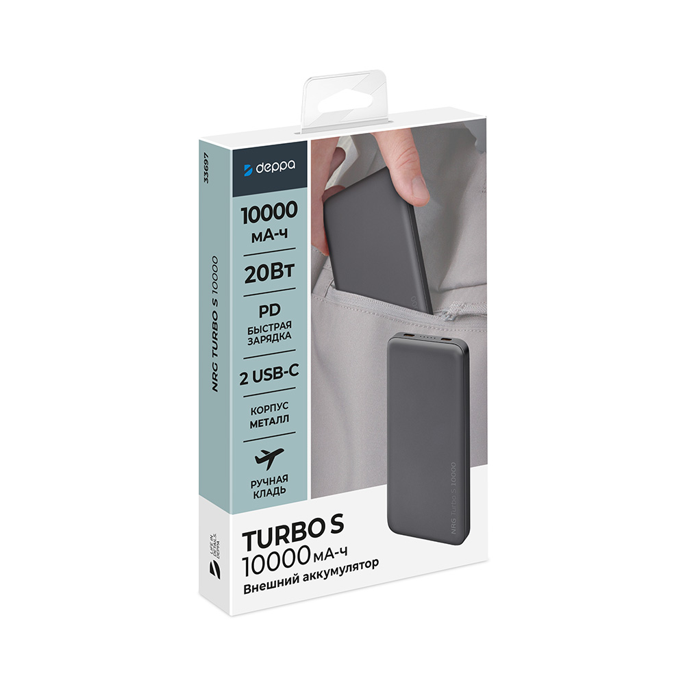Внешний АКБ NRG Turbo S 10000 mAh, 20Вт, графит, Deppa