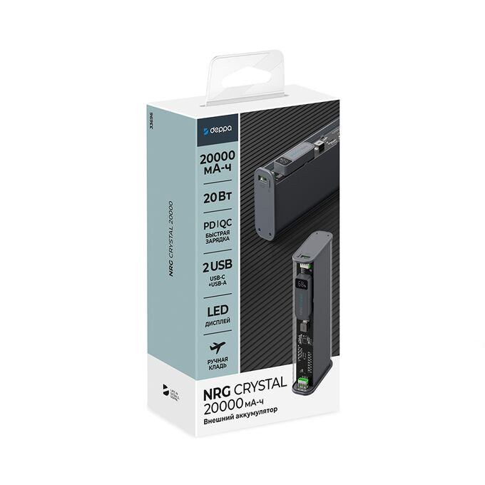 Внешний АКБ NRG Turbo TR 20000 мА-ч, 20Вт, дисплей, прозрачный