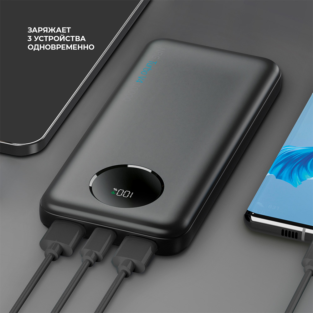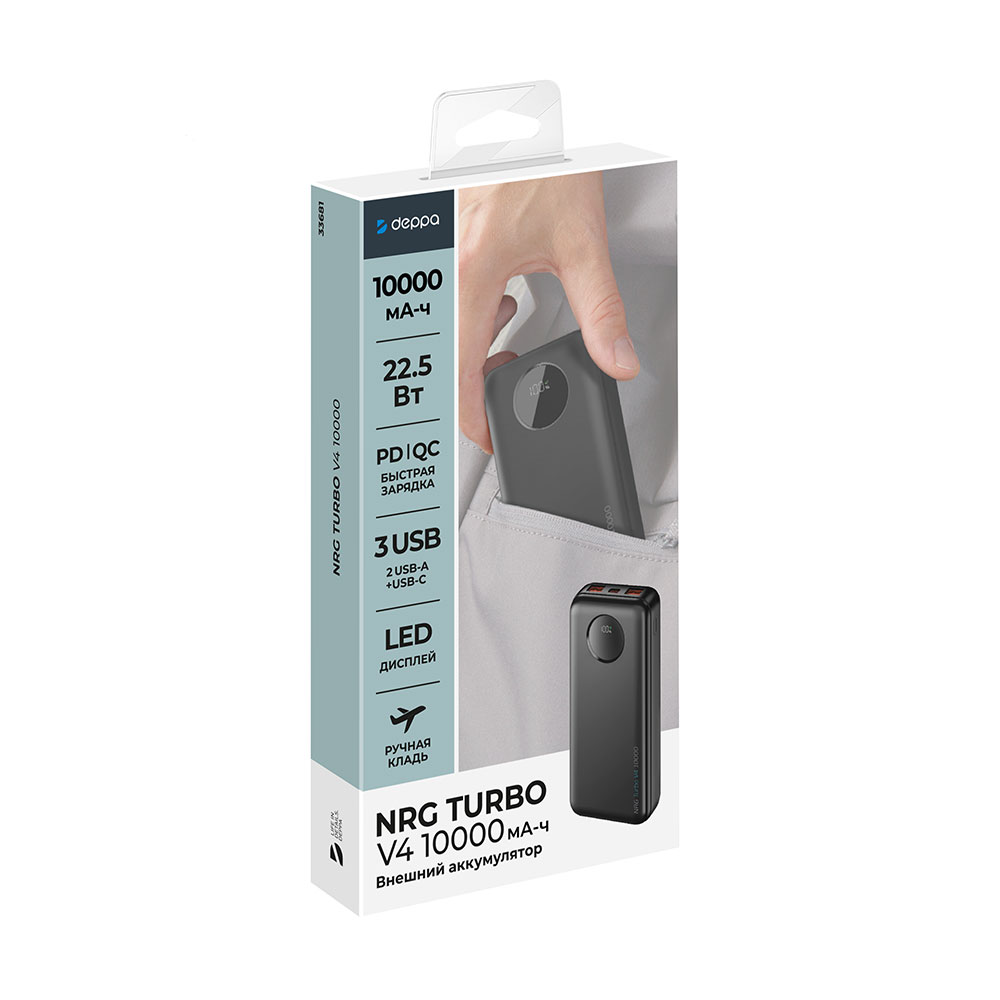 Внешний АКБ NRG Turbo V4 10000 мА-ч, дисплей, черный, Deppa