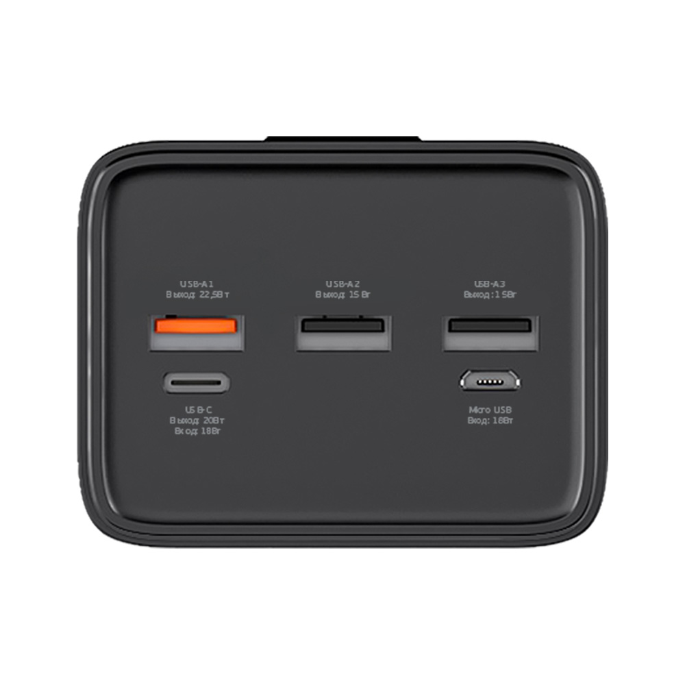 Устройство предназначено для восполнения заряда портативной техники, способной питаться от портов USB A и USB C с напряжением не более 12V и мощностью не превышающей 22,5Вт, передавая энергию от внешнего аккумулятора.
