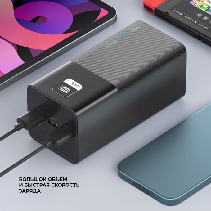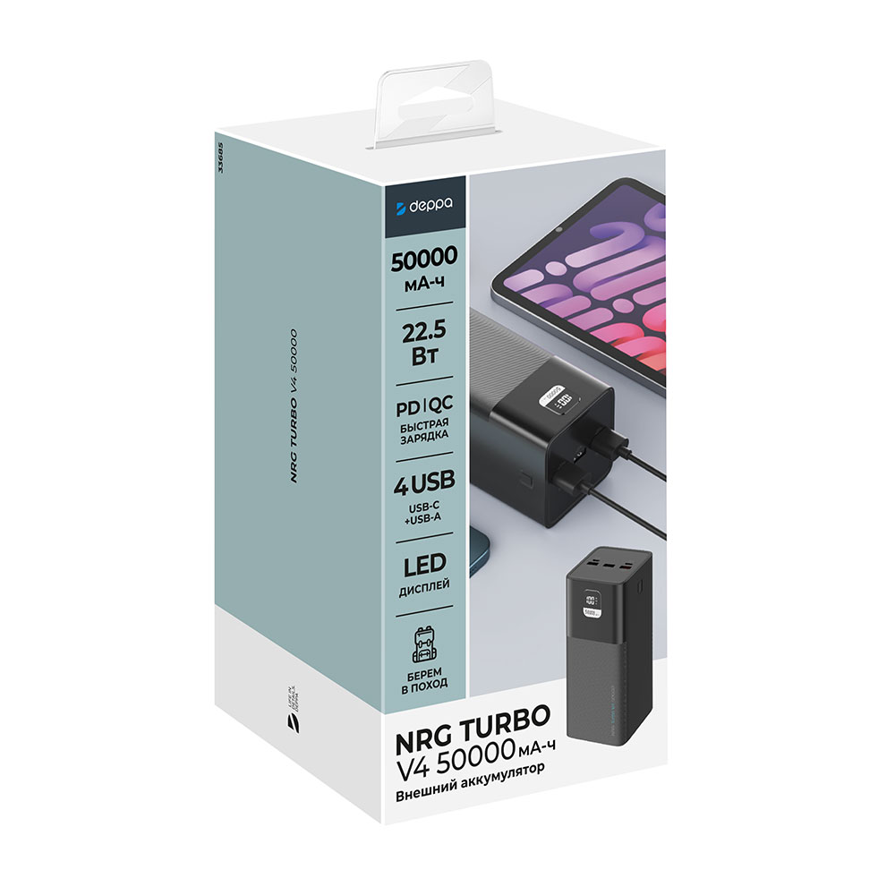 Внешний АКБ NRG Turbo V4 50000 мА-ч, дисплей, черный, Deppa