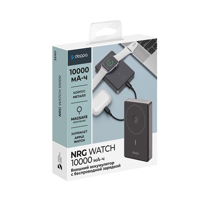 Назначение: Внешний АКБ NRG Watch 10000 мА-ч, 15Вт, MageSafe, серый, Deppa