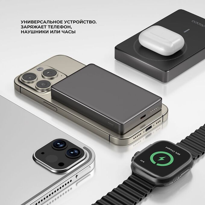 СовместимостьIphone 12 и новее, а так же все смартфоны и наушники с поддержкой стандарта QI.