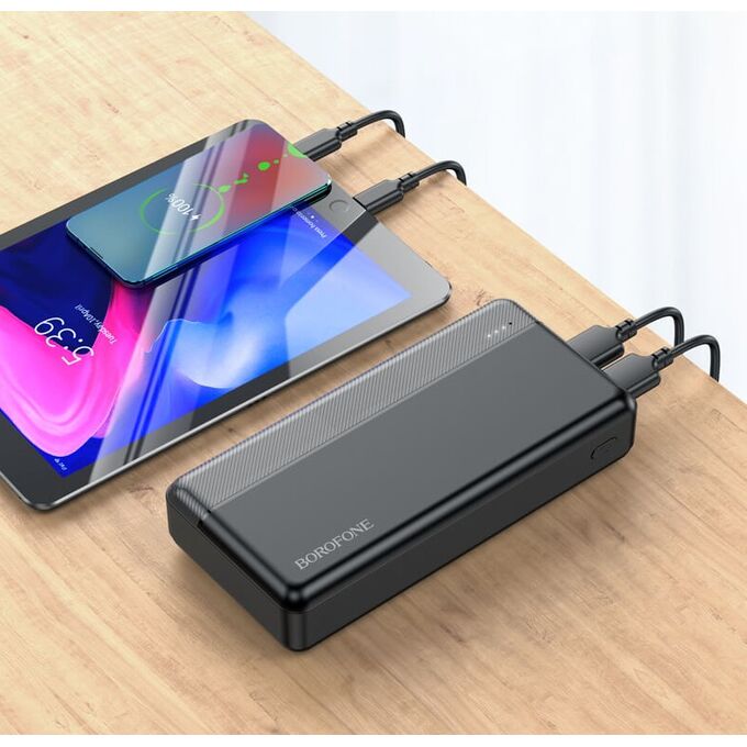 Внешний аккумулятор BJ24А ёмкостью 20 000 мАч оснащён двумя USB-портами, а также microUSB и type-C разъёмами. Максимальный выходной ток 2.1 А. Уровень заряда показывают LED-индикаторы.