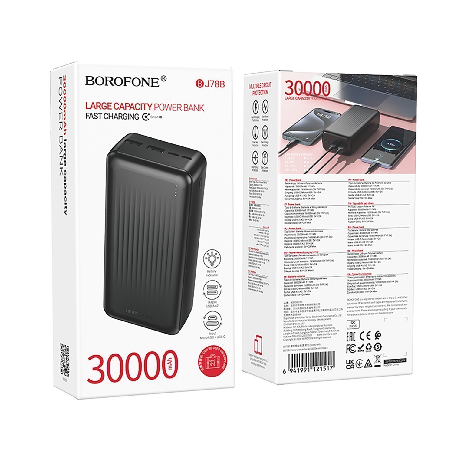 Внешний аккумулятор Borofone BJ78B 10W (5V/2A) 30000mAh Micro/Type-C/USB*2 (black)(243529)
