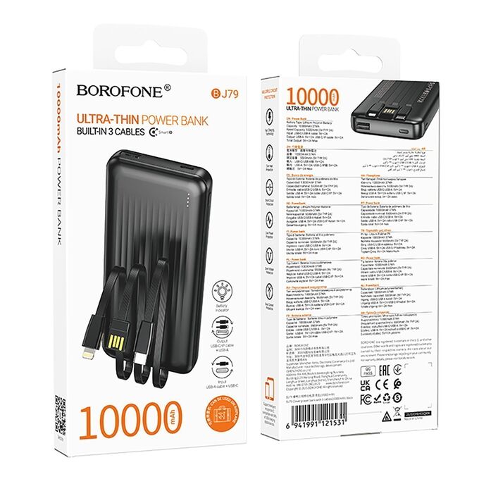 Внешний аккумулятор Borofone BJ79 10W (5V/2A) 10000mAh Type-C/USB/Type-C/Lightning (black)(243478)