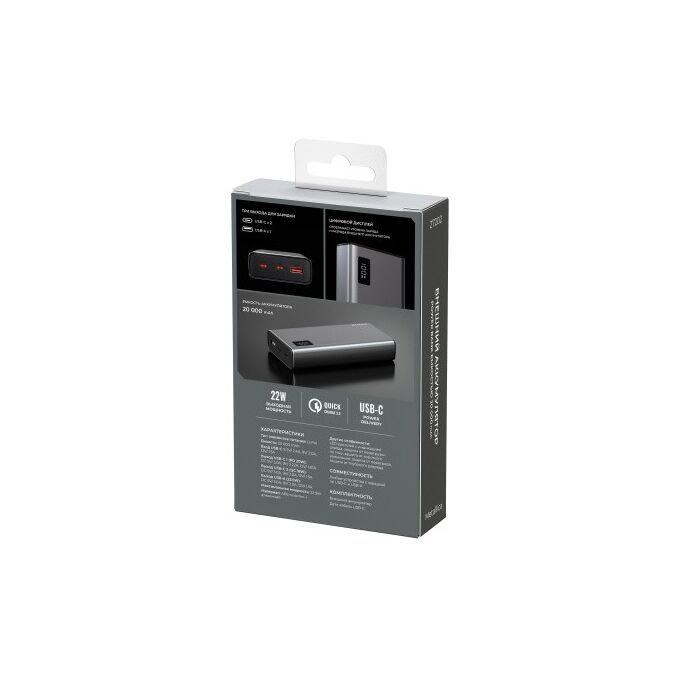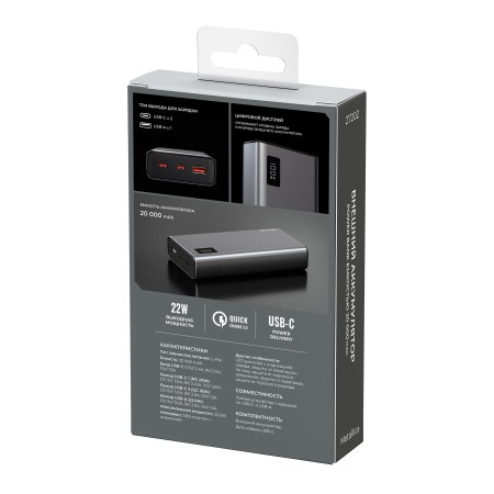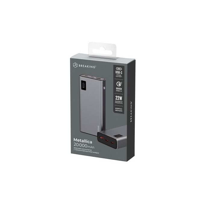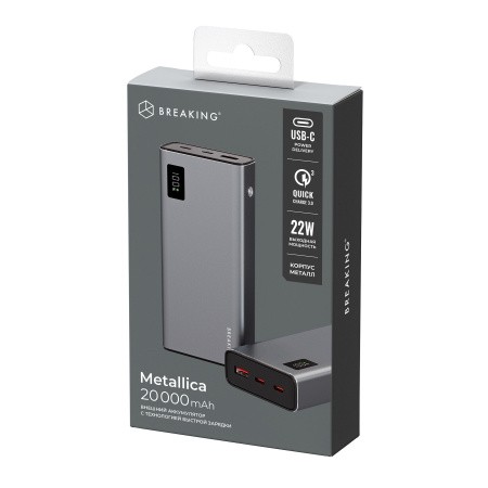 Внешний аккумулятор Breaking Metallica, USB-A + 2USB-C, 20 000 mAh, 22,5W, PD, QC 3.0, LED (Графит)
