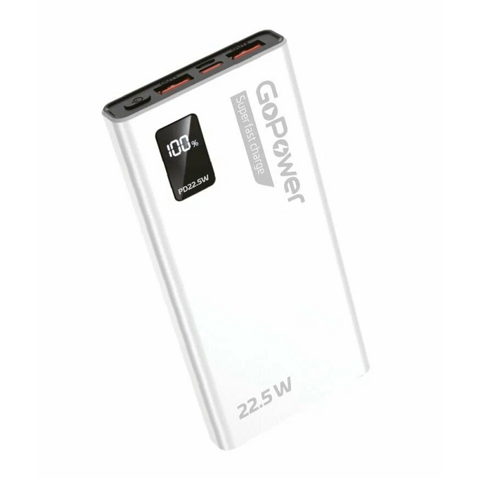 Внешний аккумулятор GoPower PB03-10 10000mAh 3.0A 22.5W 2USB/Type-C белый (00-00029658)