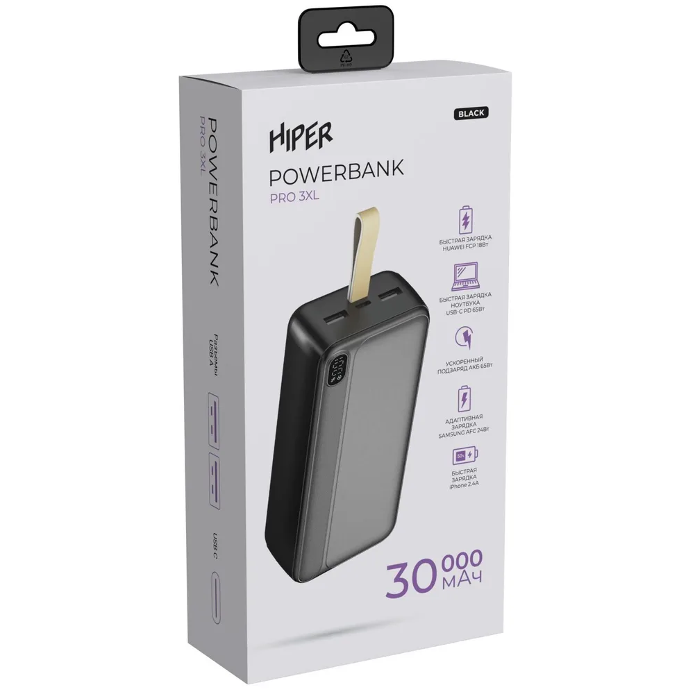 Внешний аккумулятор HIPER Pro 3XL 30000мАч быстрая зарядка чёрный
