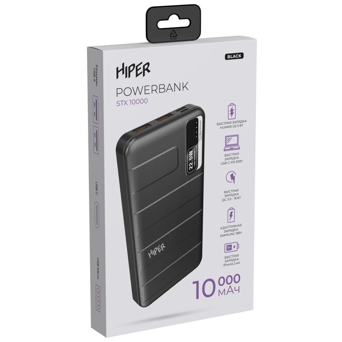 Внешний аккумулятор HIPER STX 10000 10000мАч быстрая зарядка чёрный