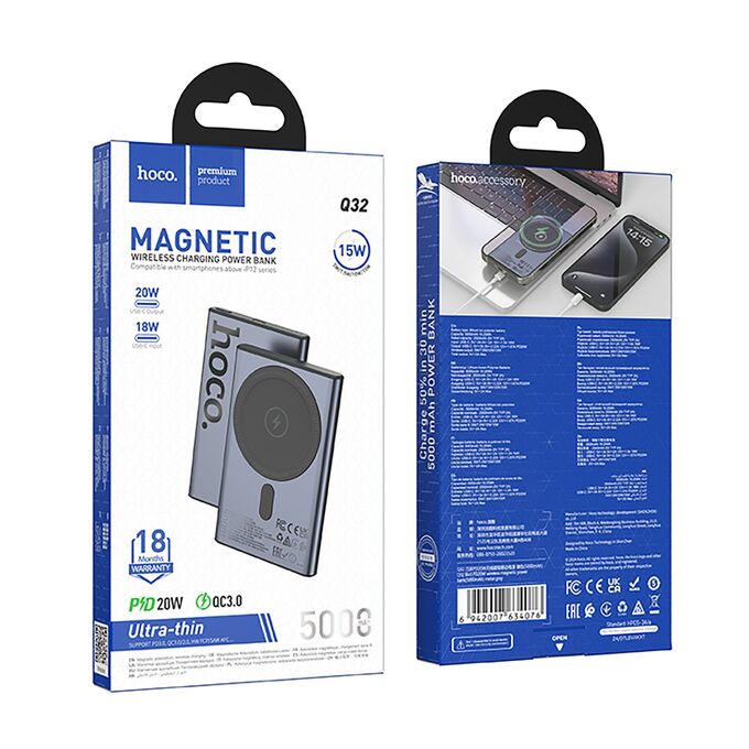 Внешний аккумулятор Hoco Q32 Bird PD20W SafeMag 5000mAh Type-C/Type-C (metal gray)(239681)