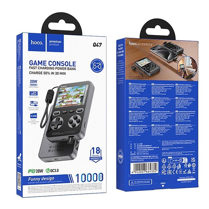 Внешний аккумулятор Hoco Q47 Shine PD20W with game console 10000mAh Type-C/Type-C (black)(241490)