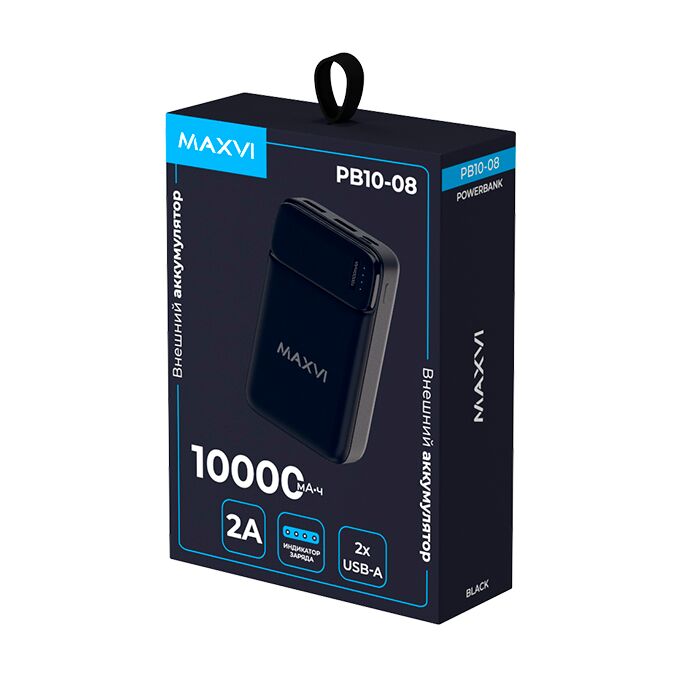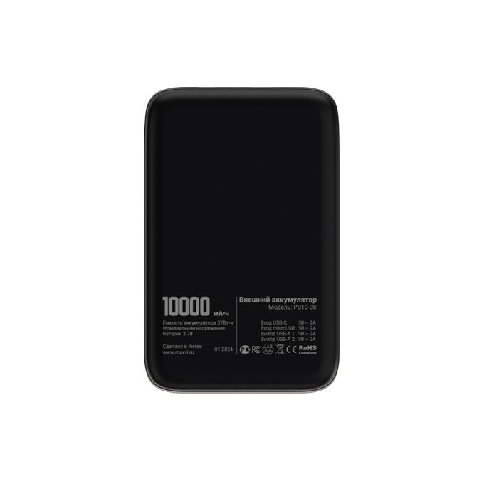 Внешний аккумулятор Maxvi PB10-08 10000мАч, 2A, 2хUSB/Type-C/MicroUSB