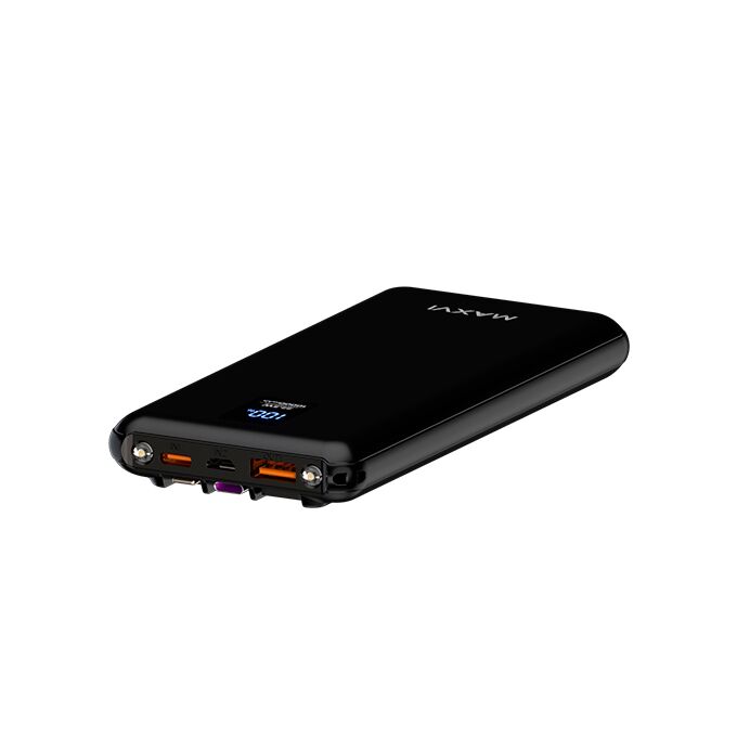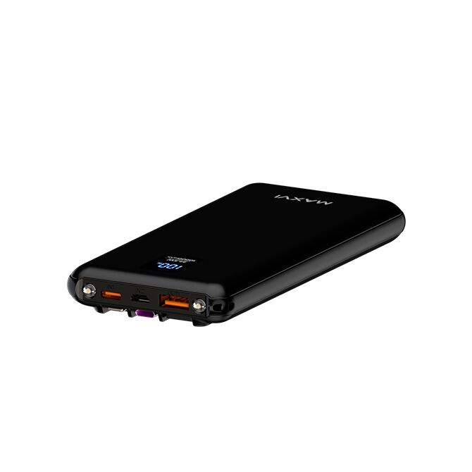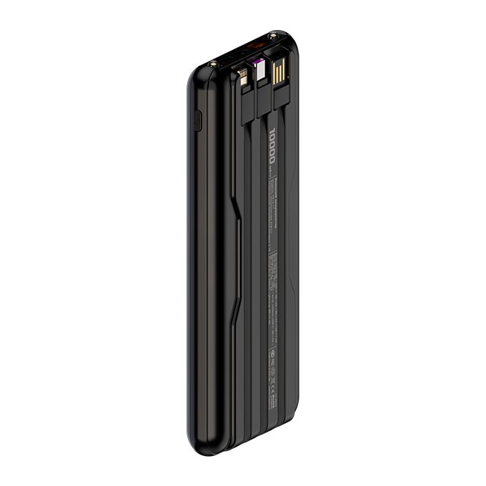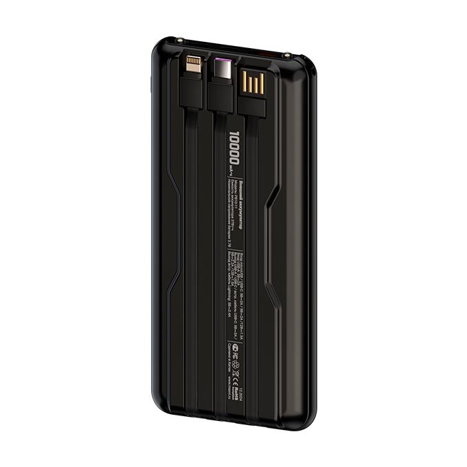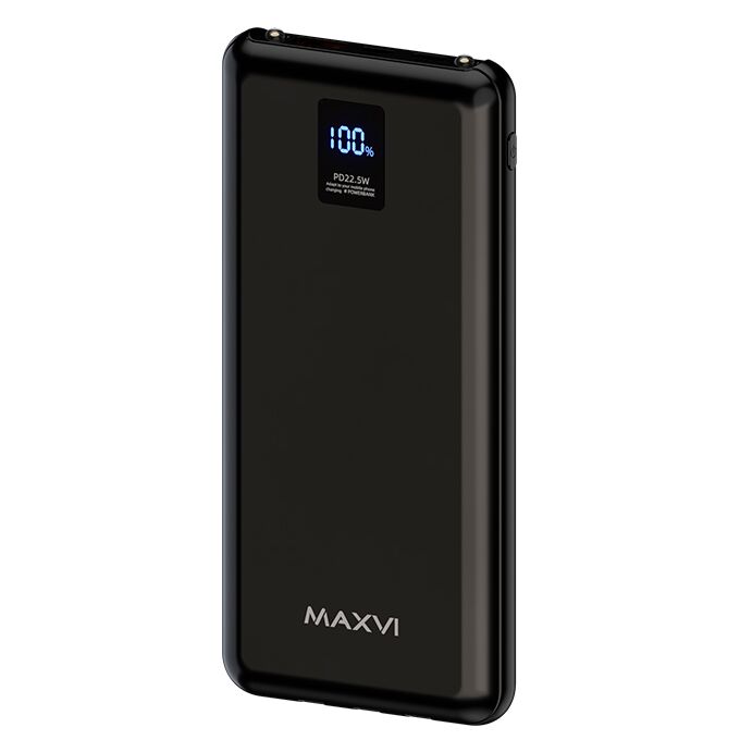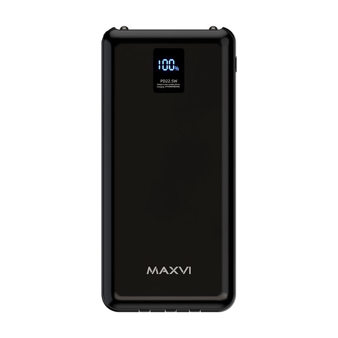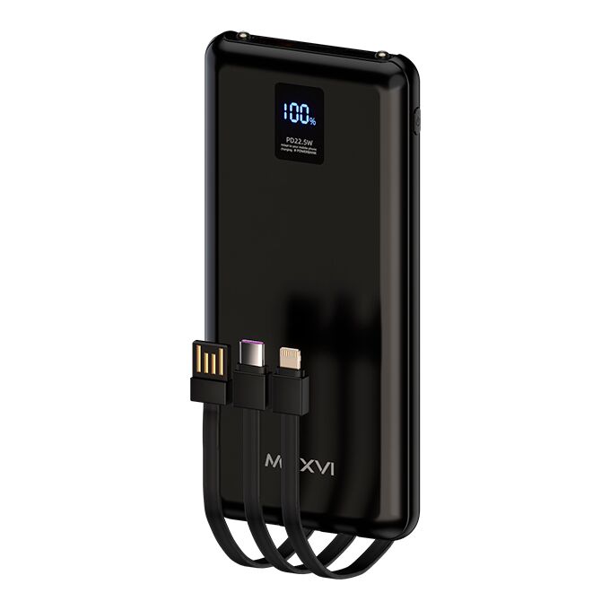 Внешний аккумулятор Maxvi PB10-11 10000мАч black 3A, встроенные кабели USB A/Type-C/Lightning