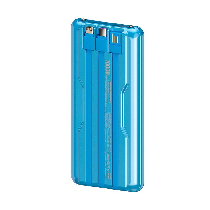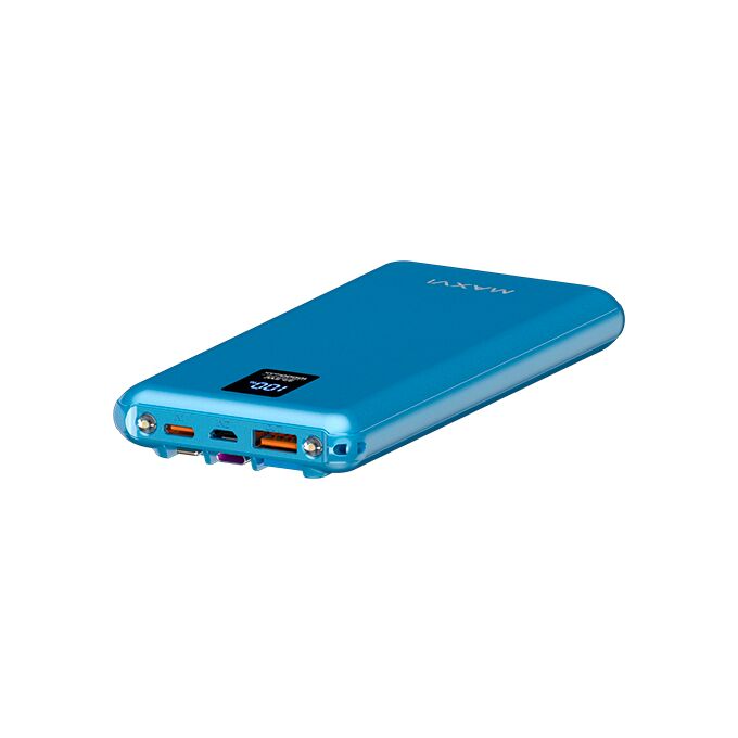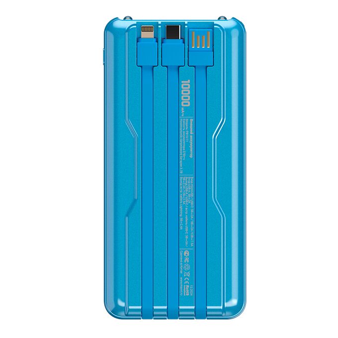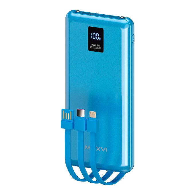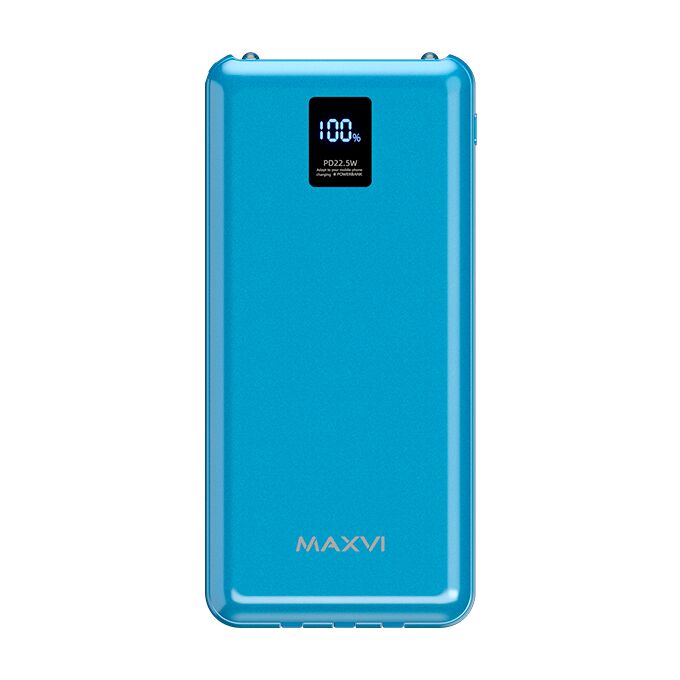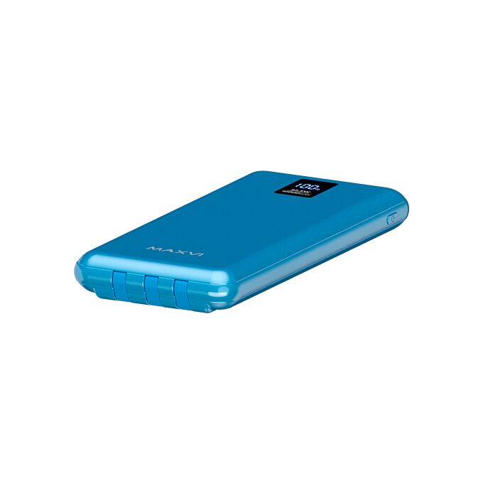 Внешний аккумулятор Maxvi PB10-11 10000мАч blue 3A, встроенные кабели USB A/Type-C/Lightning