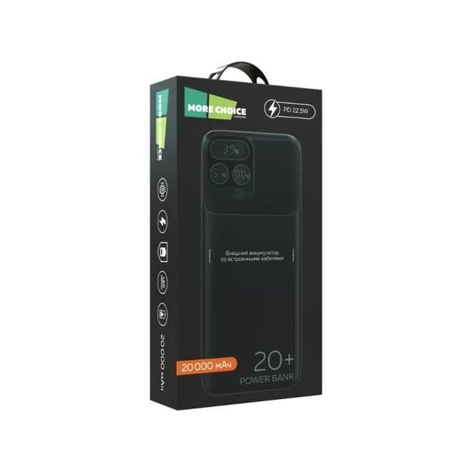 Внешний аккумулятор More choice PB55-10 10000mAh 1USB 3.0A 22.5W PD с кабелем Black