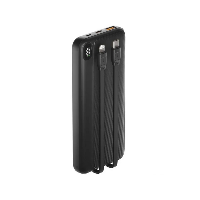 Внешний аккумулятор OLMIO L-10, 10000mAh, 22.5W, QC3.0, PD, LCD, + кабели LightningType-C черный