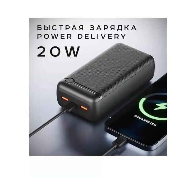 Внешний аккумулятор OLMIO P-10, 10000mAh, 20W, QuickCharge3.0/PowerDelivery черный