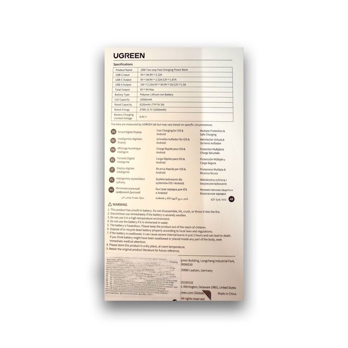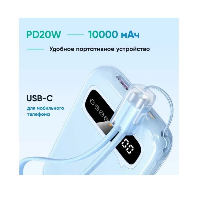 Внешний аккумулятор UGREEN CD384 (45423B) 10000mAh Mini Quick Charging 20W Power Bank синий