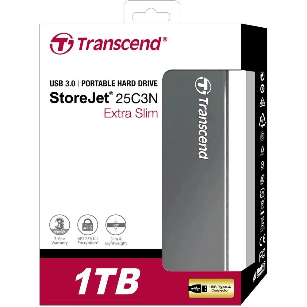 HDD ext 2.5" 1.0TB USB3.0 Transcend StoreJet 25C3, алюминий, серый (TS1TSJ25C3N)