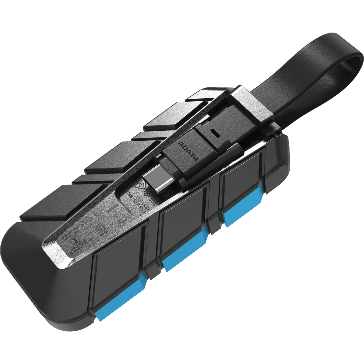встроенный кабель USB Type-C, накопитель обладает устойчивостью к ударным нагрузкам при падении с высоты до 1.22 м (стандарт MIL-STD-810G 516.6)