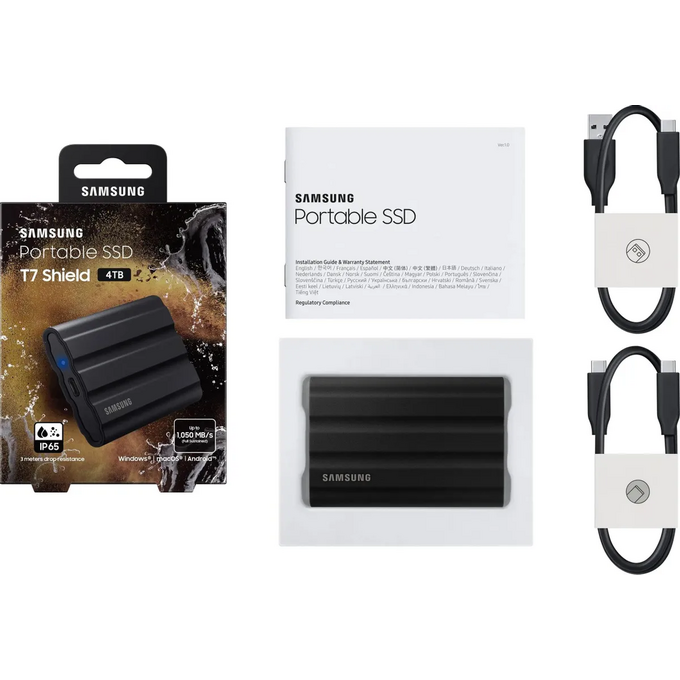 Внешний SSD Samsung T7 Shield (MU-PE4T0S/EU) 4.0Tb черный (USB3.2 Gen2, up to 1050/1000Mbs, 3D TLC, 88х13х59mm, 98g)