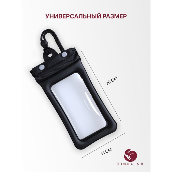 Чехол водонепроницаемый для телефона, универсальный со шнурком на шею, с двойной застежкой (Zip Lock и кнопка), размер (220x110x18 мм) черный