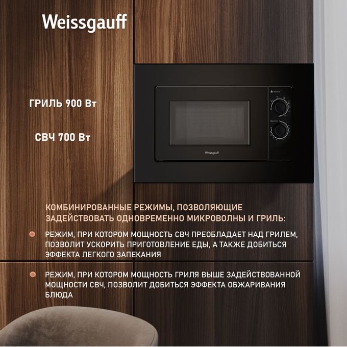Встраиваемая микроволновая печь Weissgauff HMT-2016 BGL Grill