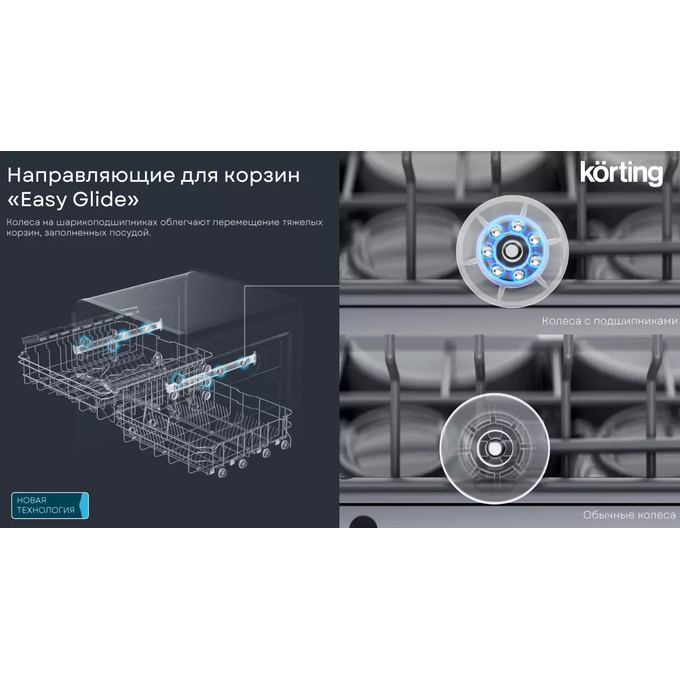Дополнительные особенности: Направляющие для корзин «Easy Glide» для более легкого перемещения корзины, Функция "Луч на полу" с цифровой индикацией